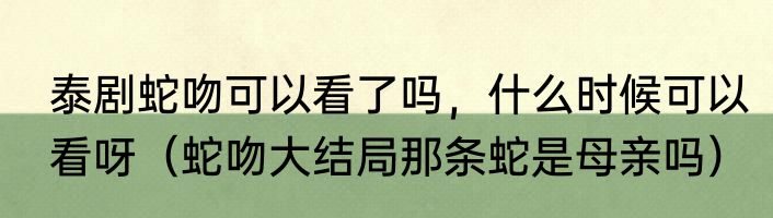 泰剧蛇吻可以看了吗,什么时候可以看呀(蛇吻大结局那条蛇是母亲吗)