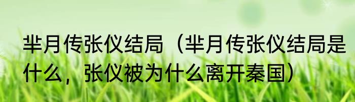 芈月传张仪结局(芈月传张仪结局是什么,张仪被为什么离开秦国)