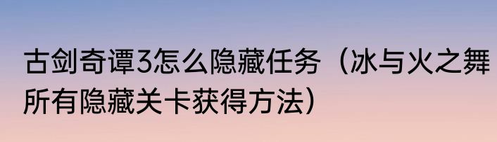 古剑奇谭3怎么隐藏任务(冰与火之舞所有隐藏关卡获得方法)