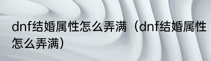 dnf结婚属性怎么弄满(dnf结婚属性怎么弄满)