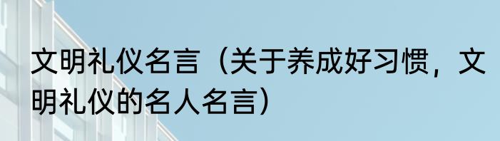 文明礼仪名言(关于养成好习惯,文明礼仪的名人名言)
