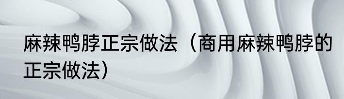 麻辣鸭脖正宗做法(商用麻辣鸭脖的正宗做法)