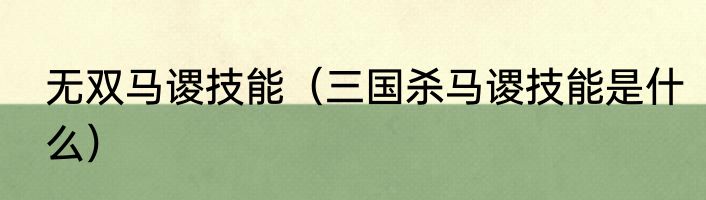 无双马谡的技能是火雨天降,马谡带火雨天降可以增加技能伤害。