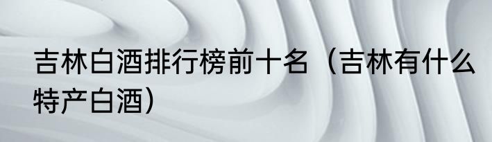 吉林白酒排行榜前十名(吉林有什么特产白酒)
