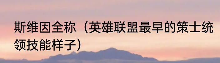 斯维因全称(英雄联盟最早的策士统领技能样子)