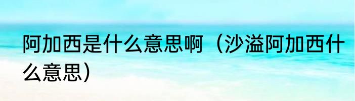 阿加西是什么意思啊(沙溢阿加西什么意思)