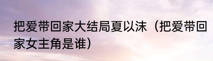 把爱带回家大结局夏以沫(把爱带回家女主角是谁)