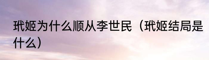 玳姬为什么顺从李世民(玳姬结局是什么)