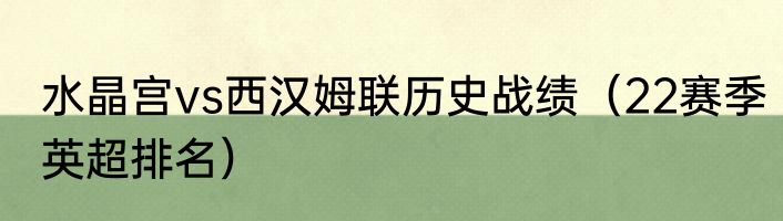 水晶宫vs西汉姆联历史战绩(22赛季英超排名)