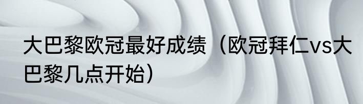 大巴黎欧冠最好成绩(欧冠拜仁vs大巴黎几点开始)