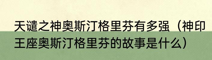 天谴之神奥斯汀格里芬有多强(神印王座奥斯汀格里芬的故事是什么)