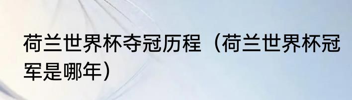 荷兰世界杯夺冠历程(荷兰世界杯冠军是哪年)