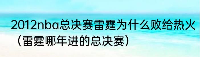 2012nba总决赛雷霆为什么败给热火(雷霆哪年进的总决赛)