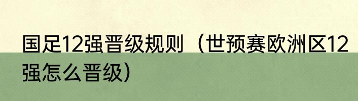 国足12强晋级规则(世预赛欧洲区12强怎么晋级)