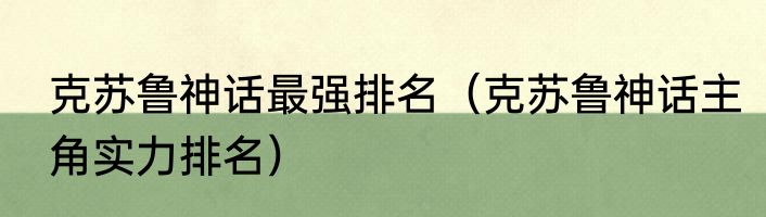 克苏鲁神话主角实力排名?