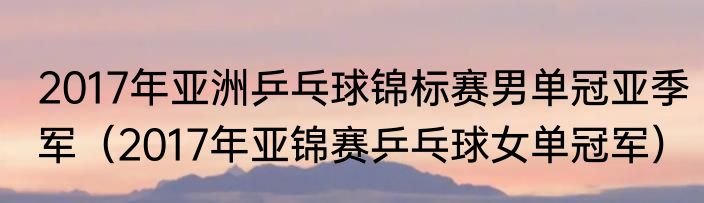 2017年亚洲乒乓球锦标赛男单冠亚季军(2017年亚锦赛乒乓球女单冠军)