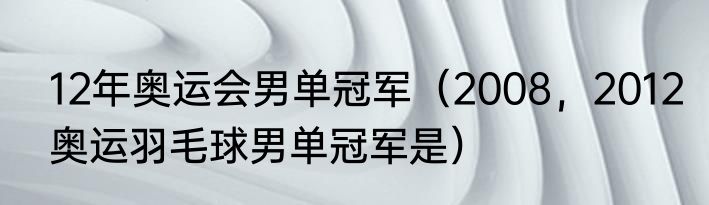 12年奥运会男单冠军(2008,2012奥运羽毛球男单冠军是)