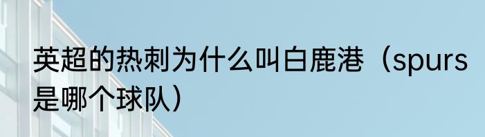 英超的热刺为什么叫白鹿港(spurs是哪个球队)