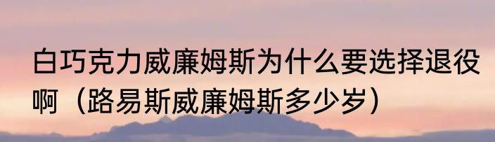 白巧克力威廉姆斯为什么要选择退役啊(路易斯威廉姆斯多少岁)