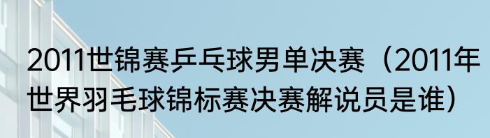 2011世锦赛乒乓球男单决赛(2011年世界羽毛球锦标赛决赛解说员是谁)