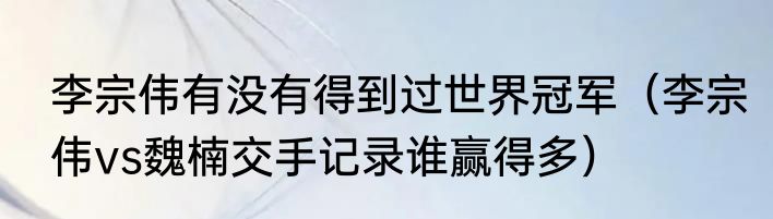 李宗伟有没有得到过世界冠军(李宗伟vs魏楠交手记录谁赢得多)