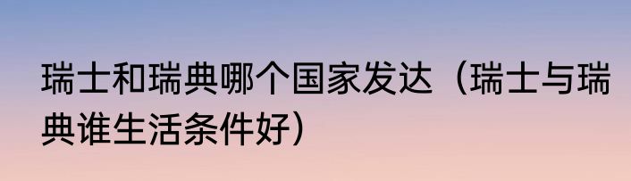 瑞士和瑞典哪个国家发达(瑞士与瑞典谁生活条件好)