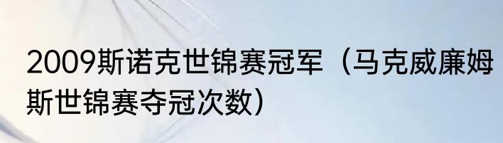 2009斯诺克世锦赛冠军(马克威廉姆斯世锦赛夺冠次数)