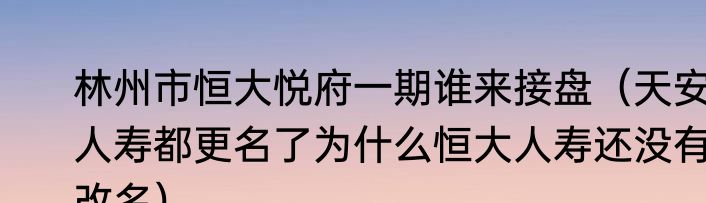 林州市恒大悦府一期谁来接盘(天安人寿都更名了为什么恒大人寿还没有改名)