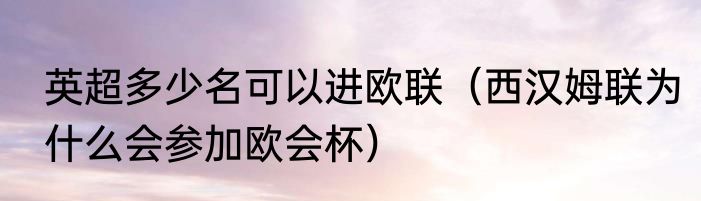 英超多少名可以进欧联(西汉姆联为什么会参加欧会杯)