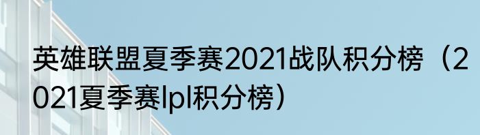英雄联盟夏季赛2021战队积分榜(2021夏季赛lpl积分榜)