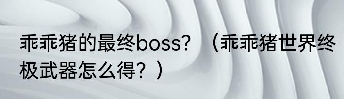 提及乖乖猪的最终boss?(乖乖猪世界终极武器怎么得?)的相关内容,许多人不太了解,来看看小莲的介绍吧!