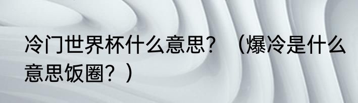 提及冷门世界杯什么意思?(爆冷是什么意思饭圈?)的相关内容,许多人不太了解,来看看小娇的介绍吧!