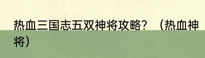 热血三国是一款非常耐玩的游戏,下面是攻略: