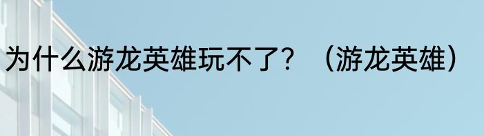 为什么游龙英雄玩不了?(游龙英雄)