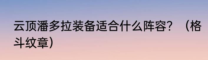 云顶潘多拉装备适合什么阵容?(格斗纹章)