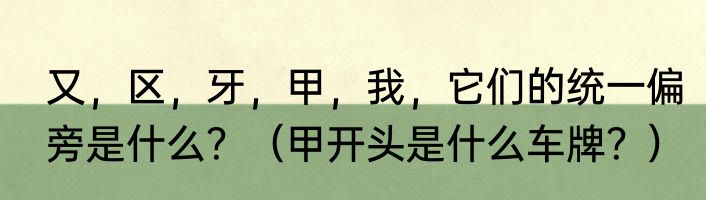 提及又,区,牙,甲,我,它们的统一偏旁是什么?(甲开头是什么车牌?)的相关内容,许多人不太了解,来看看小倩的介绍吧!