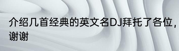 介绍几首经典的英文名DJ拜托了各位,谢谢?