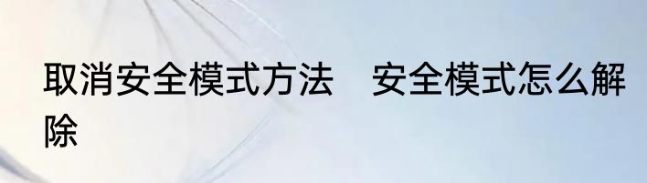 安全模式怎么解除?