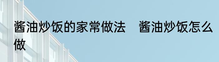 酱油炒饭的家常做法 酱油炒饭怎么做
