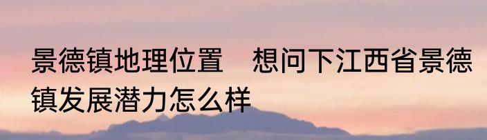 景德镇地理位置 想问下江西省景德镇发展潜力怎么样