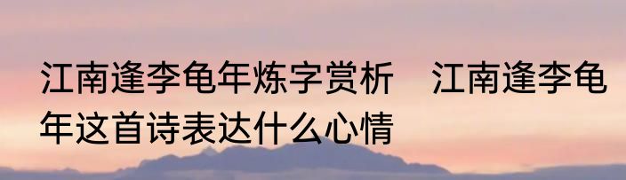 江南逢李龟年炼字赏析 江南逢李龟年这首诗表达什么心情