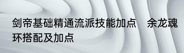 剑帝基础精通流派技能加点 余龙魂环搭配及加点