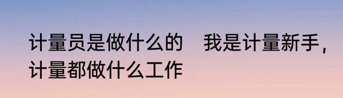 计量员是做什么的 我是计量新手,计量都做什么工作