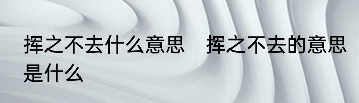 不是贬义词,挥之不去意思是指某些事情已经发生过了但没有办法挽回,但一直会在脑海中回想,怎么也忘不掉。