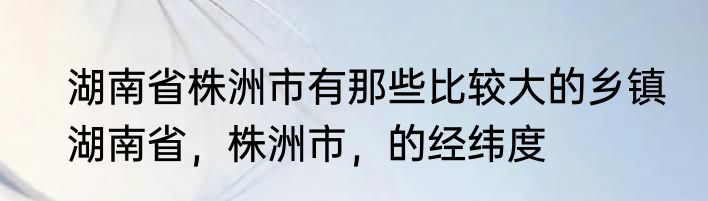 湖南省株洲市有那些比较大的乡镇 湖南省,株洲市,的经纬度