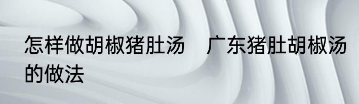 怎样做胡椒猪肚汤 广东猪肚胡椒汤的做法