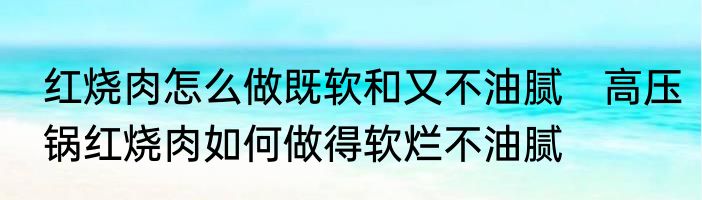 红烧肉怎么做既软和又不油腻 高压锅红烧肉如何做得软烂不油腻