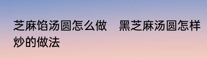 芝麻馅汤圆怎么做 黑芝麻汤圆怎样炒的做法