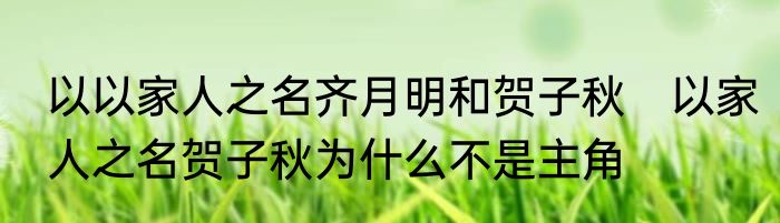以以家人之名齐月明和贺子秋 以家人之名贺子秋为什么不是主角