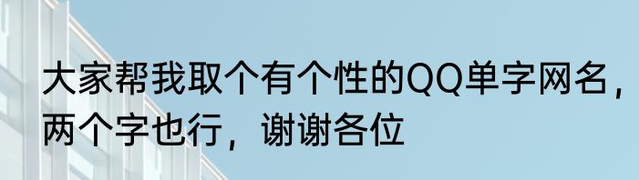 大家帮我取个有个性的QQ单字网名,两个字也行,谢谢各位?